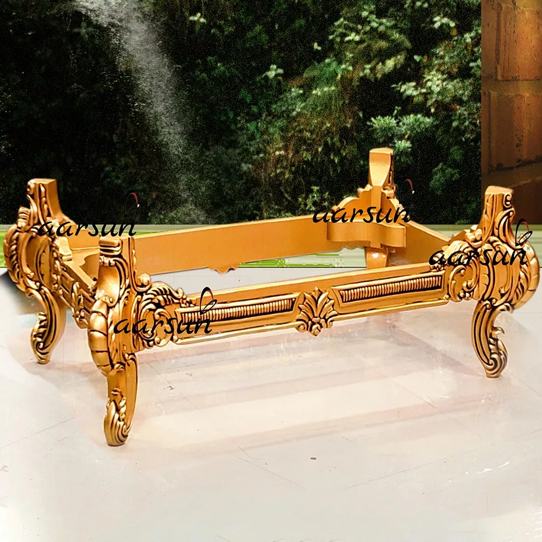 A Luxurious Wooden Center Table in Beautiful Antique Gold Paint uniquely handcrafted as per the client’s requirements.
