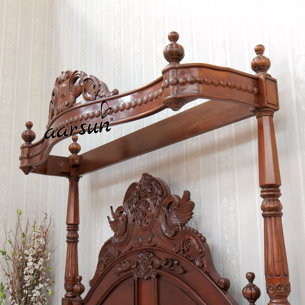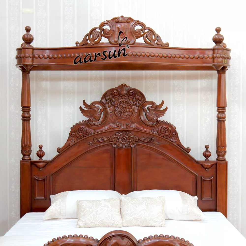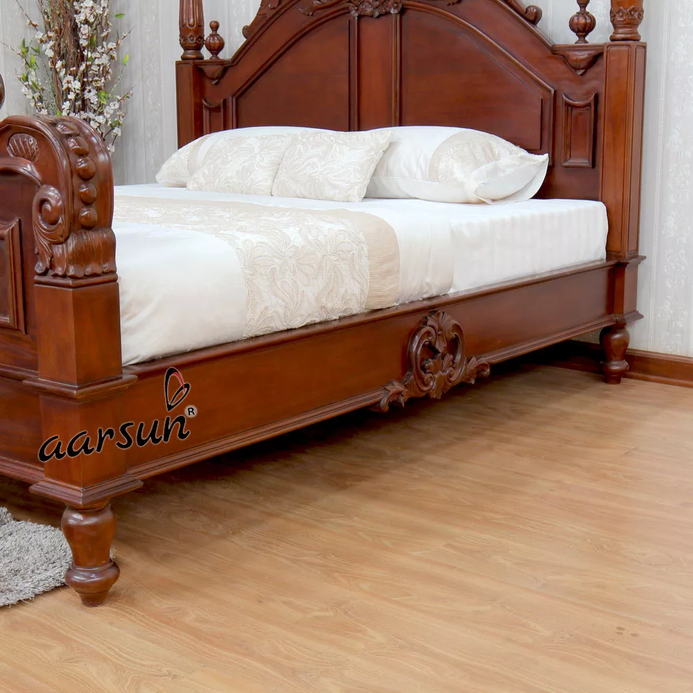 Aarsun Wooden Poster Bed for home. Take a look through our wide range of wooden beds, available in many styles and sizes. Choose from beds in solid wood like teak / Sheesham. We have worked with designers and craftsmen to create a unique line of home furnishings, hand-carved from solid hardwoods, and molded into exquisite pieces for your homes. Our beds are crafted from beautifully carved panels of Indian teak wood/ Sheesham wood.