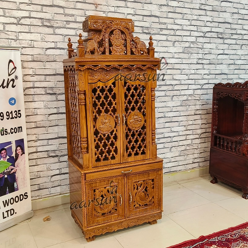 Home temple in teak wood and PU finish for worldwide home delivery at factory price.