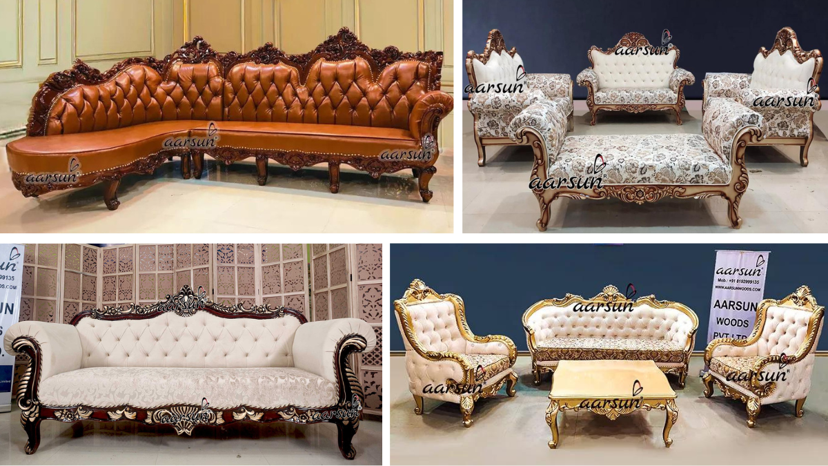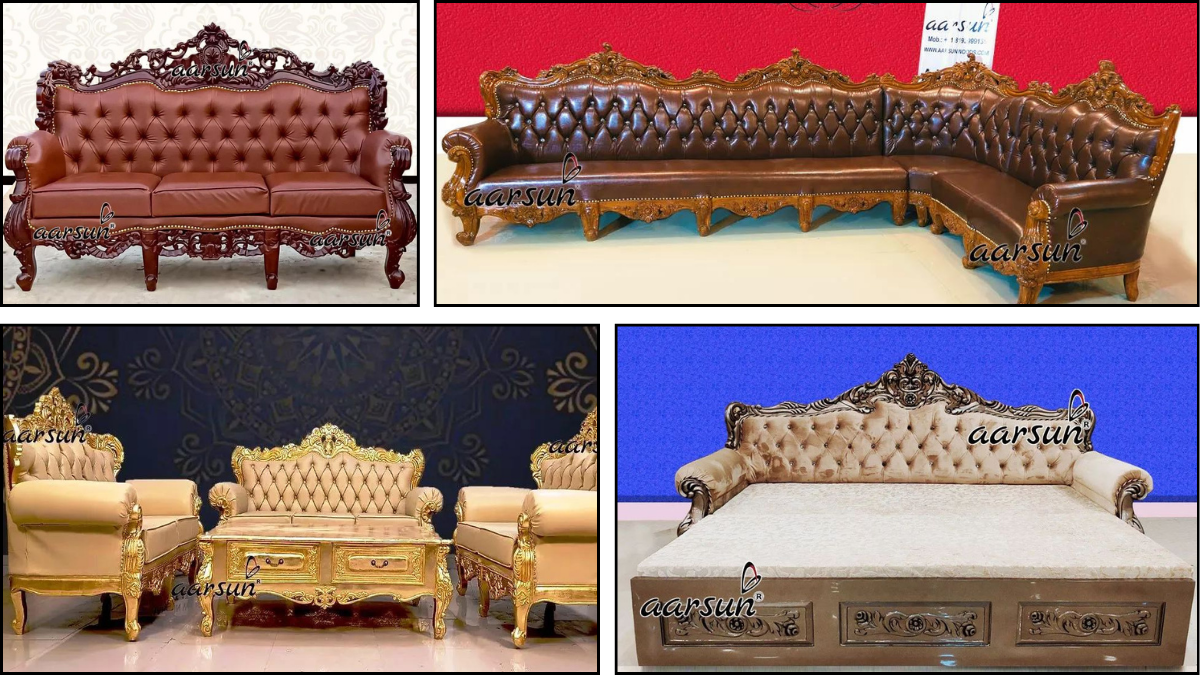 Upgrade your living room interior with the Aarsun wooden sofa set collection, a wide range of sofa sets in a different range of designs and sizes, and a golden-color sofa set that adds a touch of luxury to any living room. The gold polish reflects elegance, perfect for living rooms. Wooden sofa combines both comfort and style. Customize the design and some designs are-